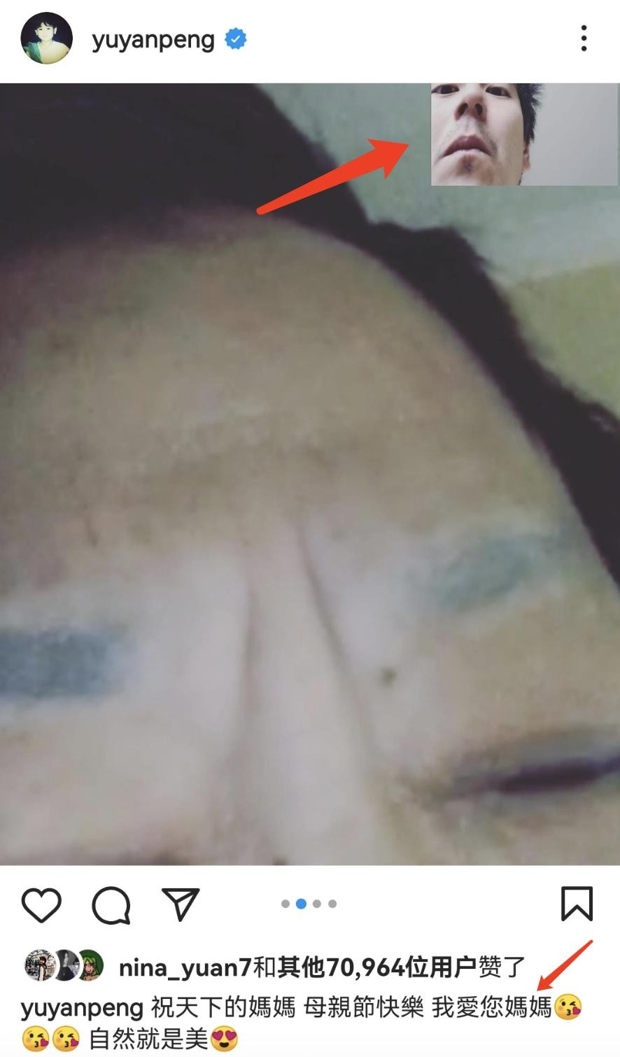 彭于晏在接受隔离的时候不忘为妈妈庆祝母亲节,晒出了视频聊天的截图,表白称“我爱您妈妈”,同样摆出了非常古怪的表情。