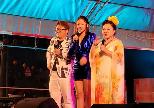 曝光的现场照中,白冰冰为了配合活动的主题,穿着一身黄色花纹长裙出镜,头戴大黄花,配上精致的妆容,打扮抢镜。