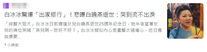 4月16日,据台媒报道,白冰冰出席某活动时,突然自曝很孤单想出家。言论一出,网友们立马议论纷纷。