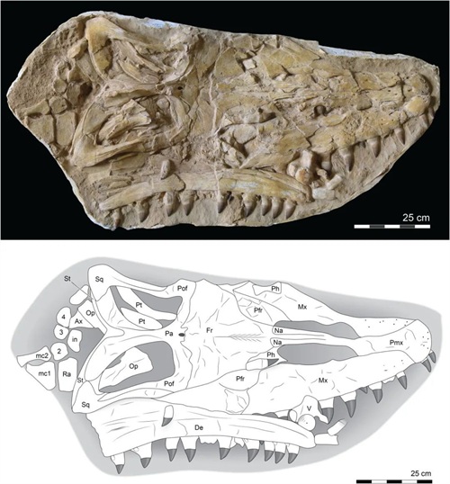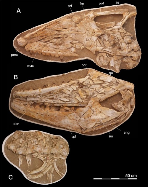 图注:海巨龙的头骨及下颌骨装架,图片来自网络