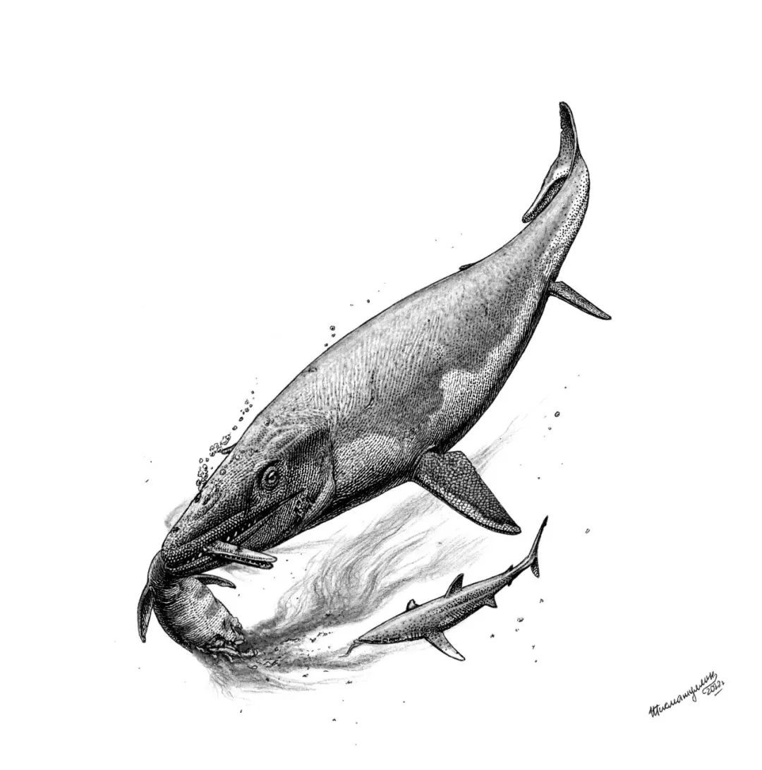 图注:海巨龙捕食其他沧龙类,图片来自网络