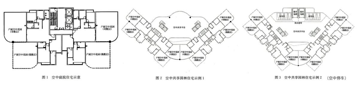 该类产品行业标准是《T∕CECS 855-2021 城市森林花园住宅设计标准》,于2021年发布。该行业标准的出台,使得相关报规报建工作更有据可依。该《标准》中,所呈现的建筑布局基本分3类,“空中户属庭园住宅”、“空中共享园林住宅”、“空中共享园林住宅(空中停车)(完全体)”。