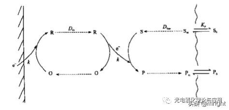 在董绍俊院士等编写的《化学修饰电极》一书中,对化学修饰电极这一研究领域进行了详细的阐述和总结,其中就讲到了聚合物修饰电极,其电催化反应中电荷传质的基本过程。如下图所示。