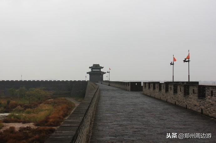 城墙在城楼处略有转折,基本呈直线,远处是西南角楼在望。