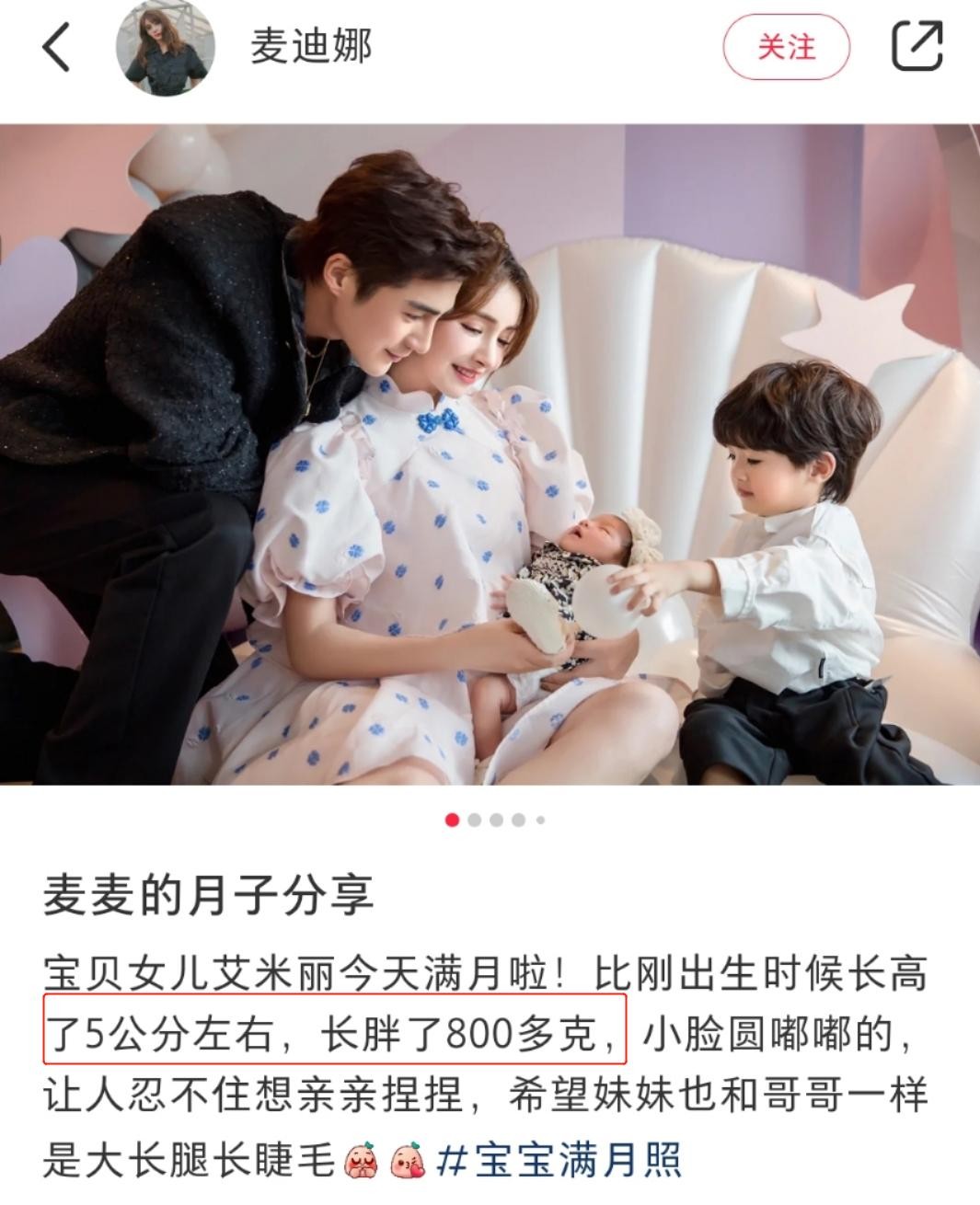 麦迪娜二胎女儿满月:长了5厘米,重了800克!长大后估计是大长腿