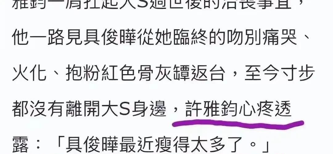 台媒证实,大S原计划采用树葬方式,但因具俊晔强烈反对而推迟。