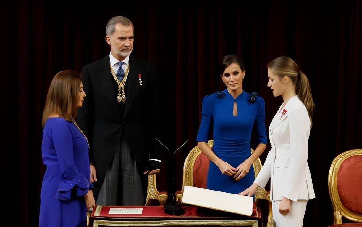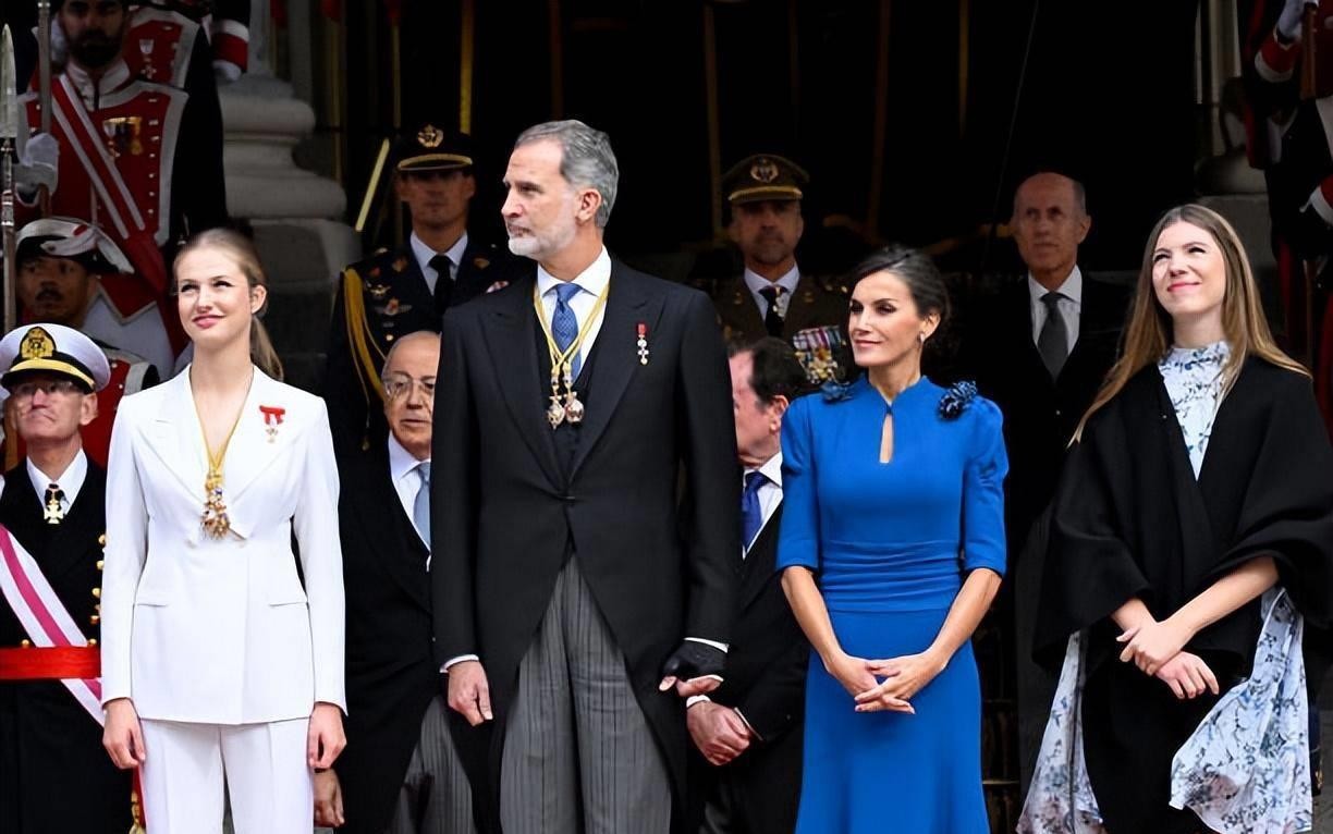18岁成人礼!西班牙大公主白色西装超霸气,妹妹蓝色斗篷惊艳亮相