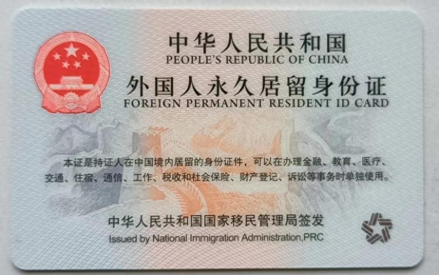 The "PR Card" (i.e. the Five Star Card) is a valid ID certificate for a foreigner who has obtained permanent residence status in China and may be used independently. Foreigners who have obtained permanent residence card in China may enter and leave China with valid passport and the "PR Card".