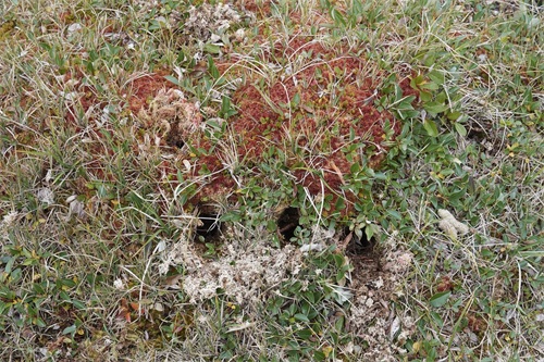 旅鼠在草地上挖洞居住