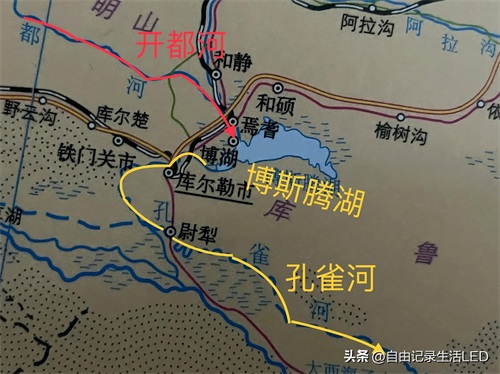 它先流入博斯腾湖,然后出博斯腾湖入孔雀河,它是孔雀河的上游。