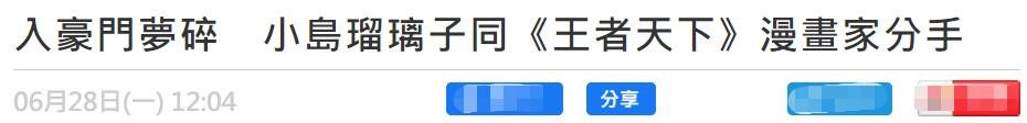 据悉,小岛瑠璃子向身边好友透露了分手一事,知情人再爆料给媒体。