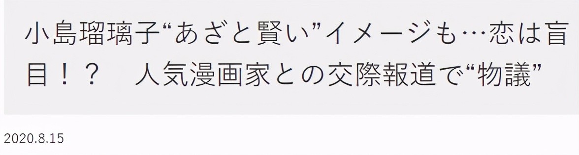 恋情传得沸沸扬扬,没多久小岛瑠璃子直接在节目上大方承认了这段关系,不畏流言蜚语。当时日媒对此评价“爱情是盲目的”,明显不认可她“为爱昏头“的表现。