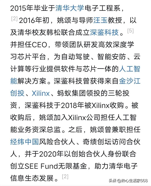 2016年,姚颂创立了深鉴科技,专注于研发高效深度学习芯片,为自动驾驶、智能安防等行业提供前沿的人工智能解决方案。两年后,深鉴科技被全球巨头Xilinx全资收购,姚颂也加入Xilinx担任人工智能业务资深总监。然而,他的创业之路并未止步。之后,他还兼职担任经纬中国风险合伙人、奇绩创坛访问合伙人,并于2020年与伙伴联合创立了SEEFund无限基金。