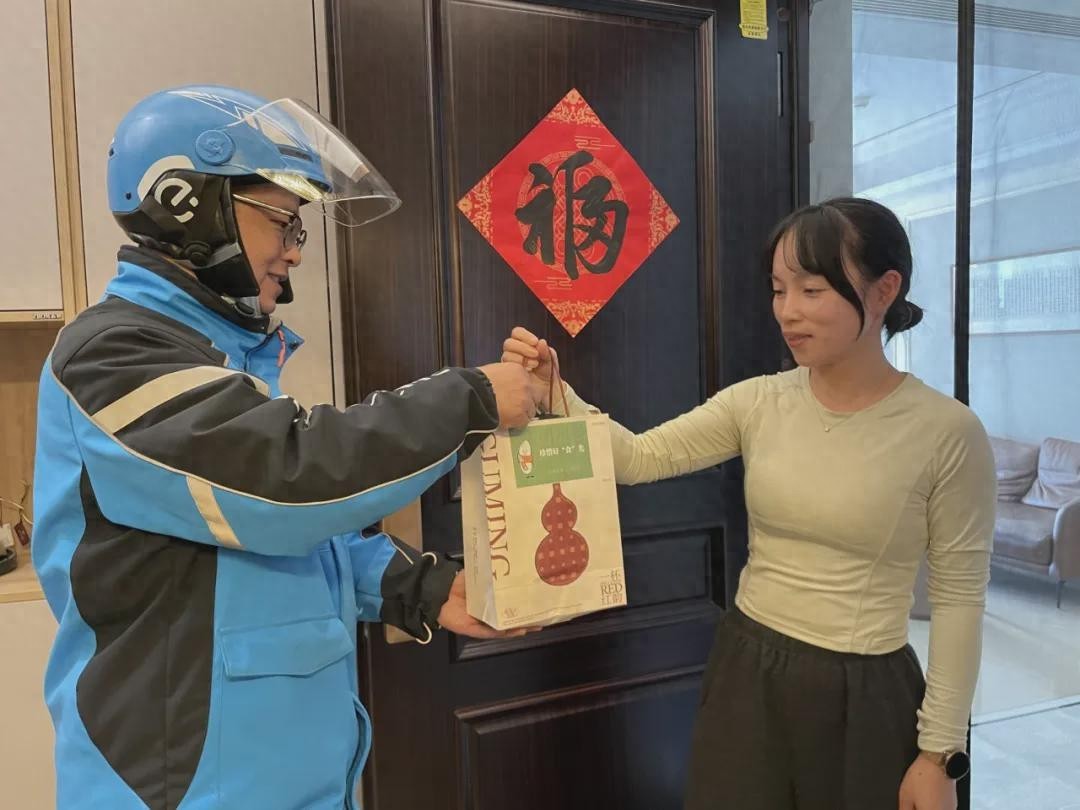 “您的外卖到了!春风十里,不及光盘有你,祝您享受好食光。”为了深入推广餐饮节约、公勺公筷等文明用餐礼仪,11月30日,钟公庙街道堇云社区联合“云骑士”外卖小哥志愿服务队,将设计精美的宣传标语粘贴在外卖袋显眼处,开启新一轮的全方位文明宣传工作。