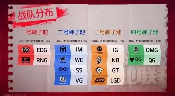 LPL赛区的战队分为四个种子池~