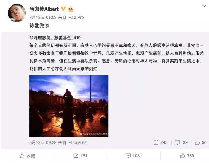 脱俗是指他的生活作风。翻看汤珈铖的汤珈铖早期微博,里面内容都是有关旅游、工作和佛教(没错,汤珈铖是信佛的)。