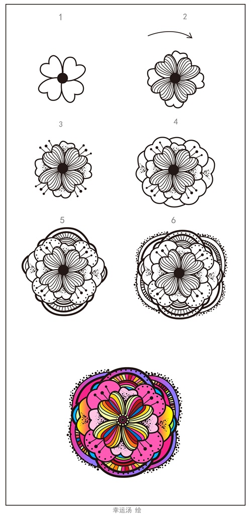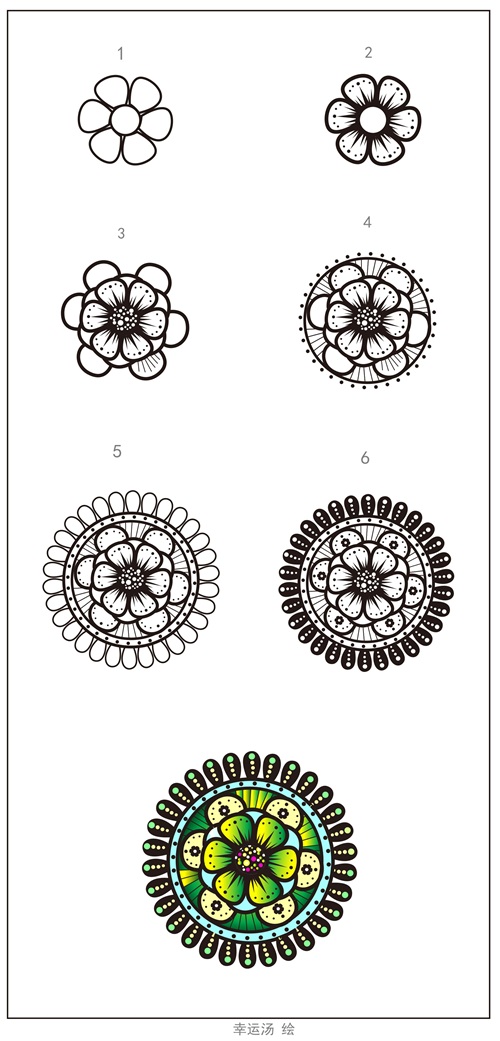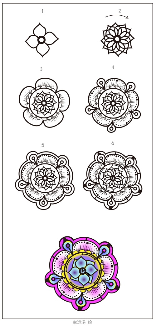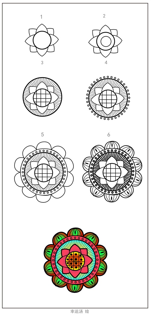 幸运汤今天教大家从最简单的图形重复画变成美丽的一张图案!