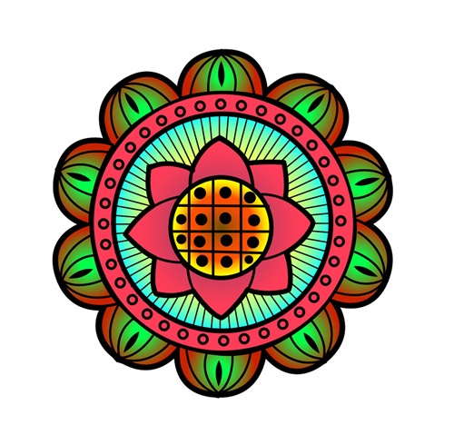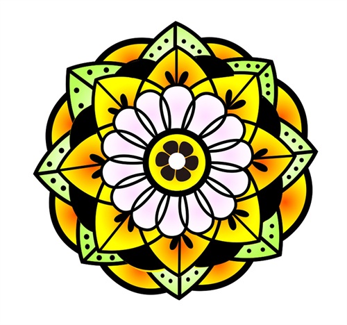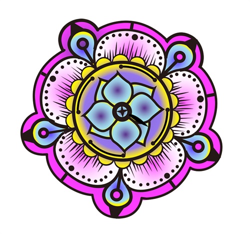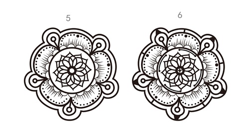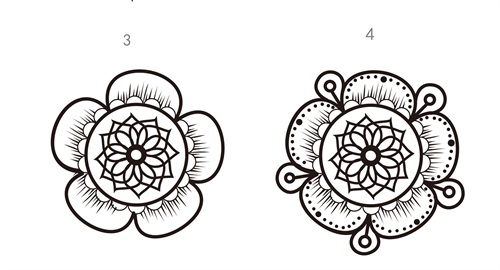 第三步:再用圆形,直线,曲线 ,半圆,菱形等这几个元素来延伸,现在画圆形和半圆花朵的另外形状为外框.