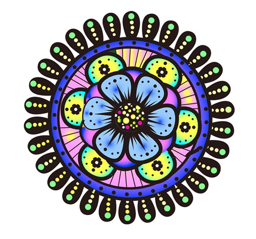 第四步:用实心圆来点缀,沿着花朵绕一圈,这样会突出花朵,也会层次分明一些