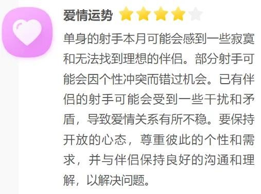 月初和月末爱情运还不错,适合扮演主动者的角色,遇到心仪对象就主动告白吧,千万不要怕失败,就算第一次不成功,只要再接再厉,对方定会被你的诚意打动。月中得到朋友帮助,有机会结识到新的异性朋友,但来电率低,难以有实质性进展。