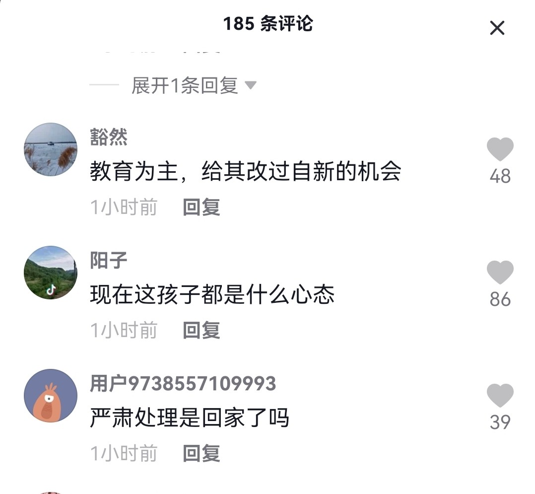 此事在网上引起热议,有网友表示,“这是大学一日游吗?”,更有网友愤慨,“辜负了父母的期望!”,也有网友表示,“要以教育为主,给其改过自新的机会。”