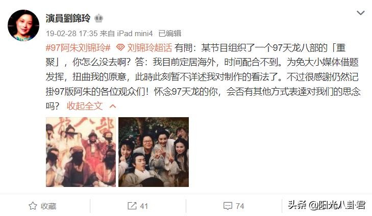 而在这一版中,饰演“阿朱”的演员刘锦玲,