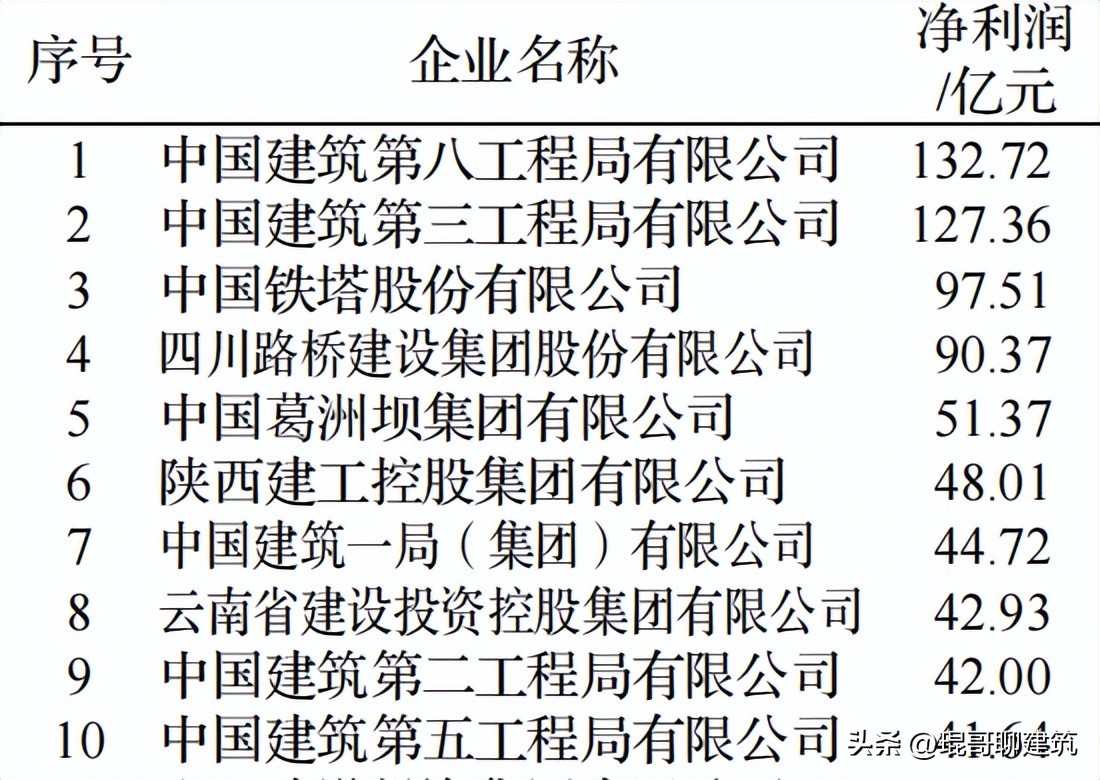 中国建筑企业盈利能力10强综合实力对比