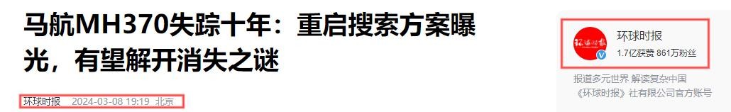 1.环球时报 2024-03-08《马航MH370失踪十年:重启搜索方案曝光,有望解开消失之谜》