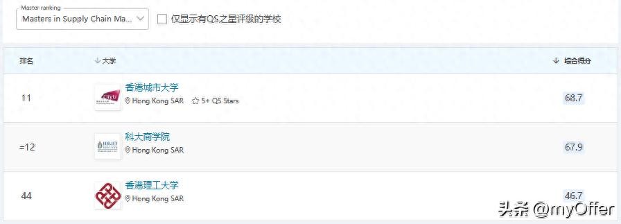 2024QS香港供应链管理硕士排名怎么样
