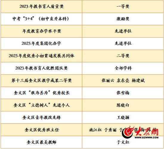 奎文区委、区政府对 2023 年度奎文区优秀教师、十佳班主任、尊师重教先进单位等个人和集体进行表彰通报,潍坊新华中学更是硕果累累。