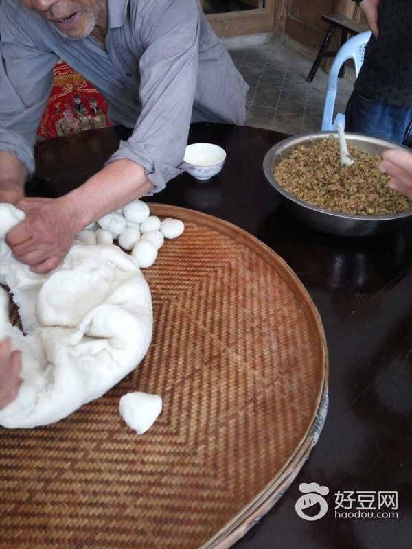 最近天气倍好,爷爷奶奶打年糕做米果啦,米果是福建的特色小吃,将糯米蒸熟,倒入容器里边加水边打,打成年糕,热乎乎糯糯的可好吃了。把年糕摘成剂子,碾平。将剁碎的肉,笋,香干包进去,像包饺子一样包好!