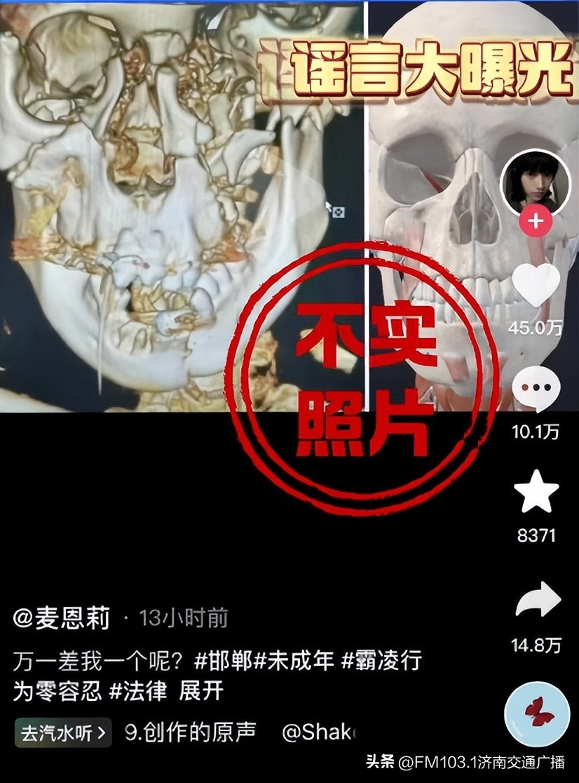 近日河北邯郸初一学生王某某被害案引发广泛关注, 网友围绕案情提出诸多疑点。其中,“雯雯想要幸福”“麦恩莉”“拉布拉蝶儿”等多个平台的博主发帖传播邯郸初中生遇害案颅骨照片,并有博主根据该图片,配文作出“死者被活埋”“案件有成年人帮凶”等分析和结论。