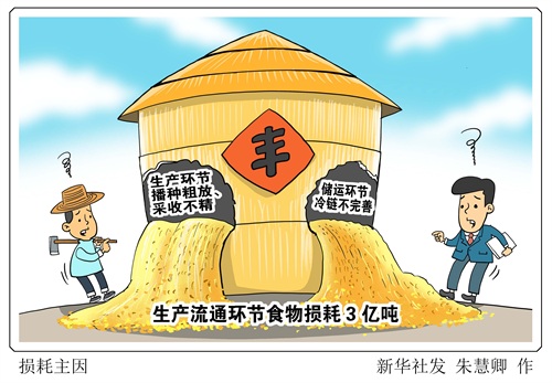 农业农村部食物与营养发展研究所近期一项研究揭示,每年我国蔬菜、水果、水产品、粮食、肉类、奶类、蛋类七大类食物按重量加权平均损耗和浪费率合计22.7%,约4.6亿吨,其中生产流通环节食物损耗3亿吨。“新华视点”记者调查发现,生产环节播种粗放、采收不精,储运环节冷链不完善是造成食物损耗的主要原因。