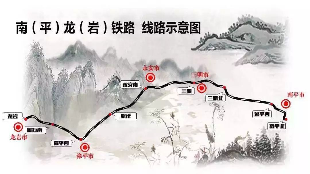 作为国家铁路网杭广铁路和福建省“三纵六横九环”铁路网的重要组成部分,南龙铁路与合福高铁以及杭深、龙厦铁路一起形成高等级快速铁路环状通道,使福建省内连接地市快速铁路环线封“口”成形。南龙铁路北起福建省南平市,南抵龙岩市,线路全长248.1公里,设计时速200公里,设有南平北、延平西、三明北、三明、永安南、双洋、漳平西、雁石南、龙岩9个车站。