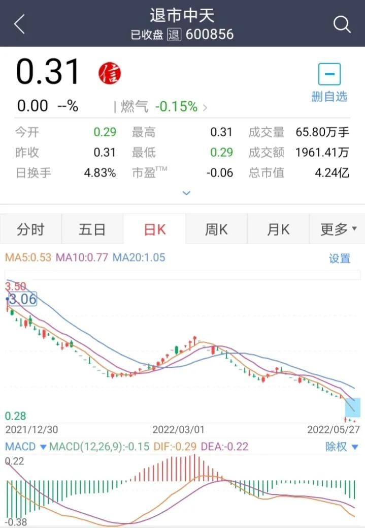 一些列的举报阴霾笼罩着“ST中天”导致复牌后股价重创夭折!离停牌时的0.82/股 最低报价0.28/股 总市值减少近8亿 目前仍然看不见上涨回暖的迹象!