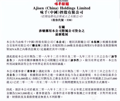 随着味千押宝的百度外卖2017年的散伙,再一次进入了黑暗的亏损期,但就这,还不是味千拉面的下限,2017年年底,刚刚在外卖战线上败下阵来,又被爆出贪腐事件,首席财务官通过一只笔贪污了大笔公司资金这到底是咋回事?