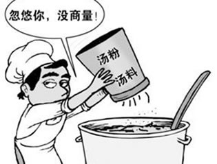 而后面就是刚才说的,有人提出报告,说这份所谓的农业大学的鉴定报告是花了6000块钱伪造的,一波未平一波又起,味千拉面官方还没来得及狡辩什么,官方的石锤也落了地,根据广州药监局的调查结果,味千拉面的汤底并非是熬汤,而是直接用的浓缩料包。