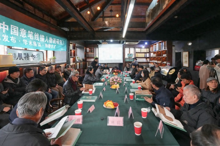 1月6日上午,由中国美术学院中国画学院和湖北美术出版社联合主办的“吴山明《中国意笔线描人物画研究》新书发布会”在中国美术学院出版社南山书屋举行。