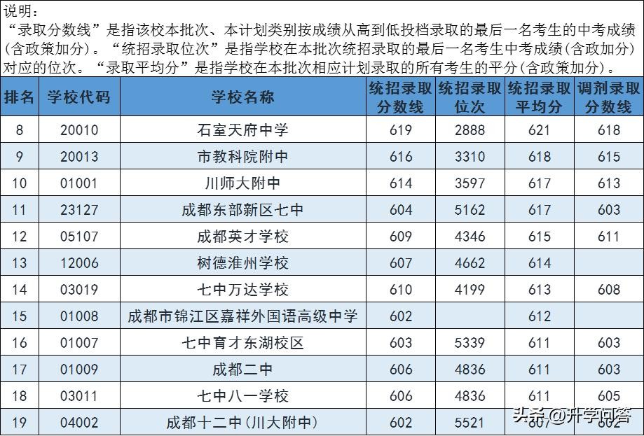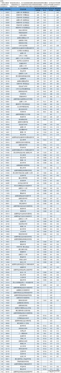 以下是2024年最新成都高中录取平均分排名汇总表: