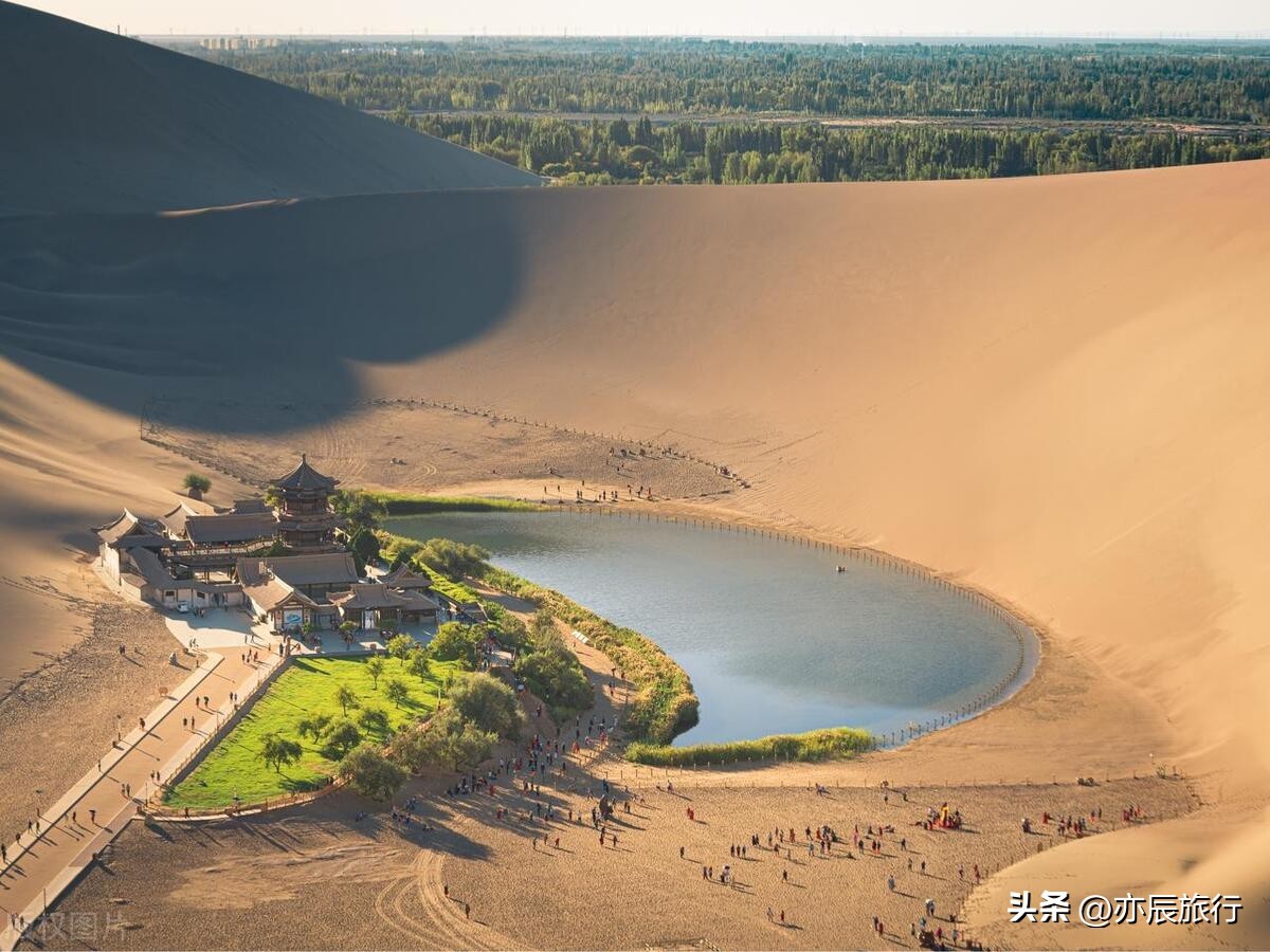 景点特色:鸣沙山由流沙堆积而成,因沙动有声而得名;月牙泉则处于鸣沙山环抱之中,形似新月。