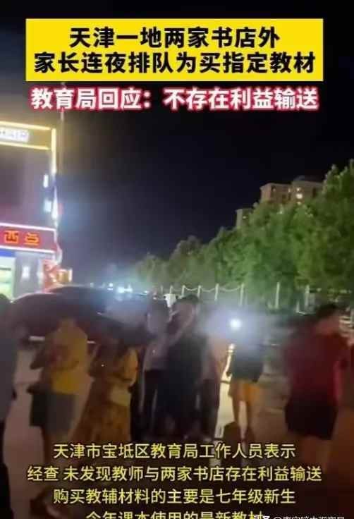 说完了入学报名缴费的事,接着说教辅材的事,又是熟悉的配方,又是熟悉的味道。在天津市宝坻区,有很多家长接受媒体采访时表示,孩子所在的班主任要求到指定的书店购买指定的辅导教材,事前不说,但是却要求第二天就得使用,逼着孩子和家长去买!问题是老师指定的书只有两家书店有,无奈之下,家长们去书店门前排购买,人多又集中,连夜排三四个小时才买到,去晚了还买不到。