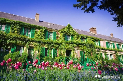 法国吉维尼小镇,坐落在巴黎市的郊区,层层起伏山地,白墙红顶农舍,条条深绿林带,片片艳红花朵,尽善尽美呈现。一片片花枝招展,五彩缤纷综合性花草,美得让人眼花撩乱,流连忘返···印象派大师莫奈选择在此终老一生。