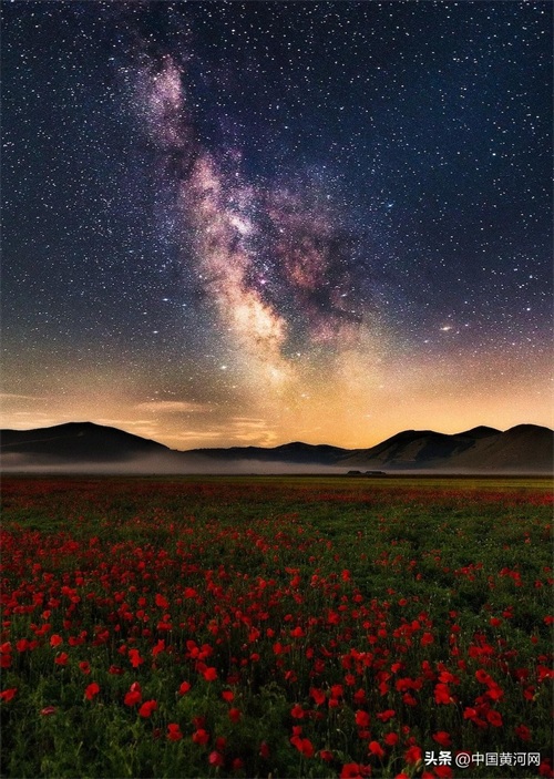 这片位于亚平宁山脉中部,面积约15平方公里的冲击平原,每年四至七月间,漫山遍野的七彩花卉令人眼花缭乱。这里更有无数叫不出名字的缤纷野花,五颜六色混合而成,散布整个平原,带着兀自妖娆的气息肆意绽放。在夜晚星空的映衬下,仿佛上帝撒下的花瓣雨。