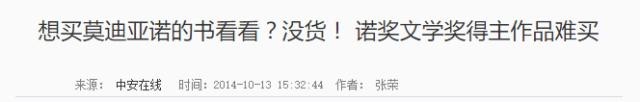 2014年的「文学双十一」表现同样不俗,莫迪亚诺的作品销量在奖项公布后的一个月内呈现240倍的增长。