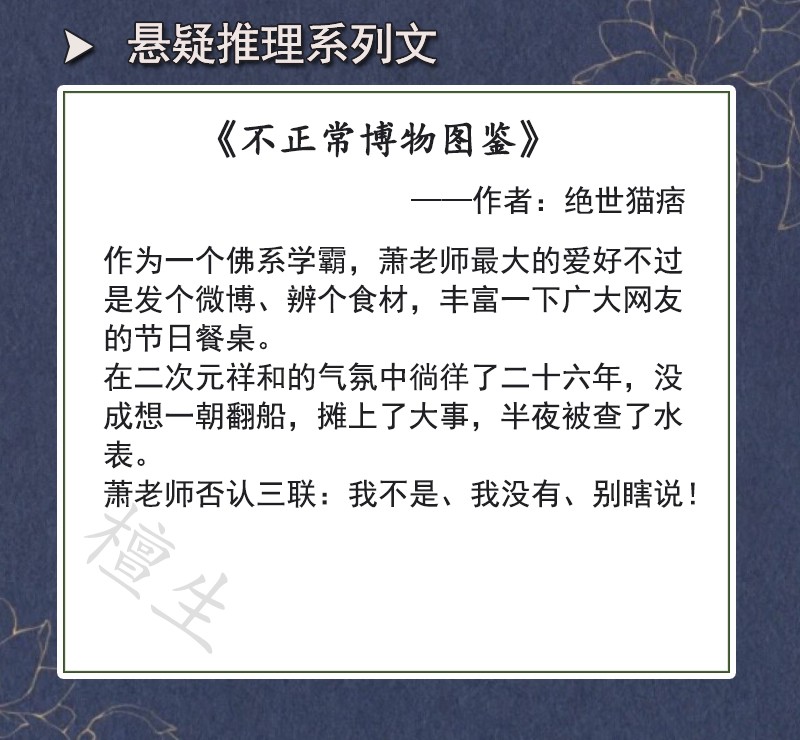 纯爱:悬疑刑侦文!《不正常博物图鉴》《心毒》强强联手破迷案