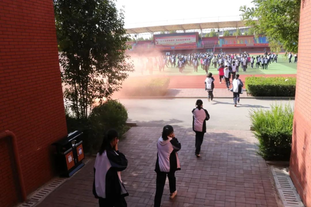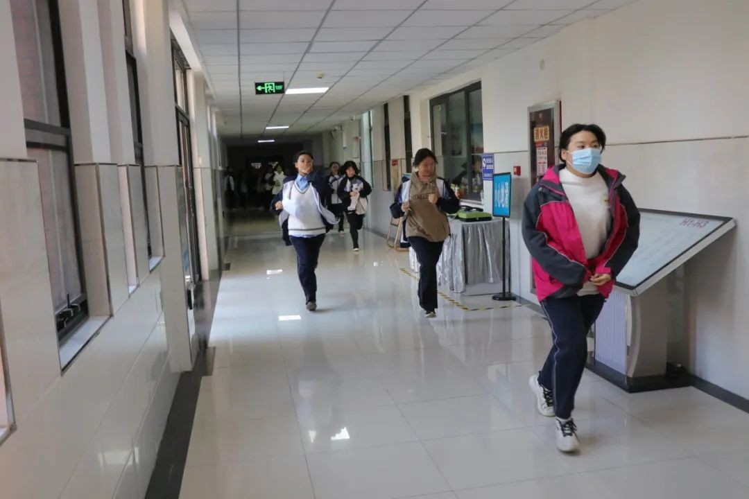 中午12时50分,随着王尊胜组长宣布演习开始,警报声响彻校园,整个校园瞬间进入了紧急状态。宿舍管理员迅速打开安全通道大门,引导学生按照预定的疏散路线有序撤离。