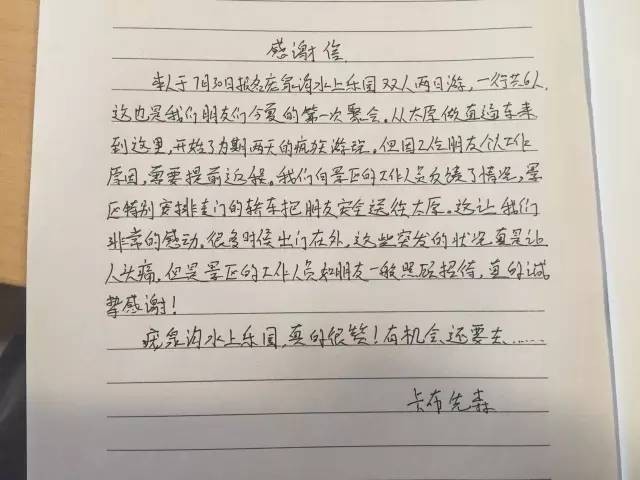 本人于7月30日报名庞泉沟水上乐园双人两日游,一行共6人,这也是我们朋友们今夏的第一次聚会。从太原做直通车来到这里,开始了为期两天的疯狂游玩。但因2位朋友个人工作原因,需要提前返程。我们向景区的工作人员反馈了情况,景区特别安排专门的轿车把朋友安全送往太原。这让我们非常的感动。很多时候出门在外,这些突发的状况真的是让人头痛,但是景区的工作人员如朋友一般照顾招待,真的诚挚感谢!庞泉沟水上乐园,真的很赞!有机会还要去~