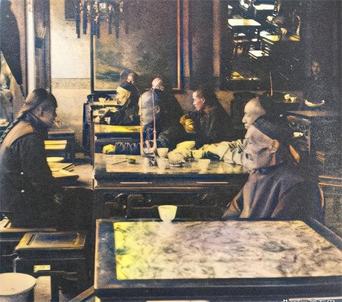 120年前的上海,是一座开埠不久、还未达到民国时期繁华水平的城市。这组老照片可以带我们回到那个时代,一窥当时的生活场景和风貌。在高档茶楼里,身份体面的茶客品着茶水;街头人来人往,