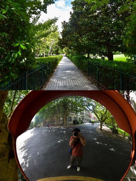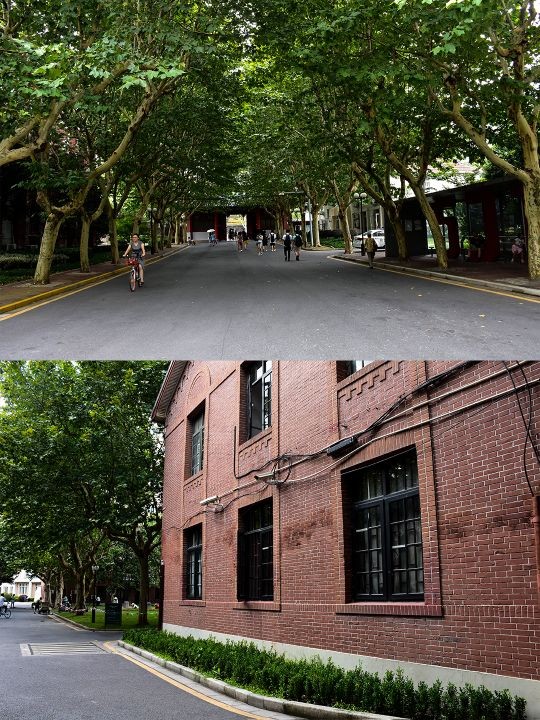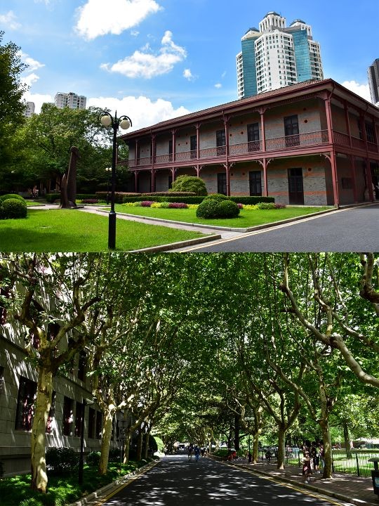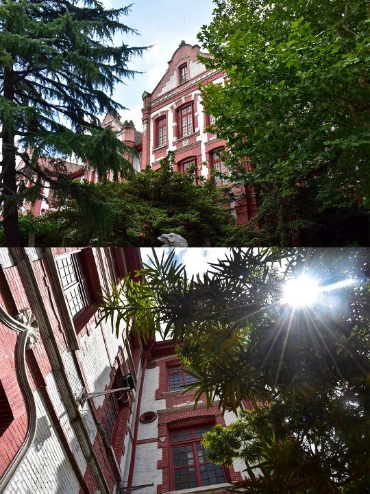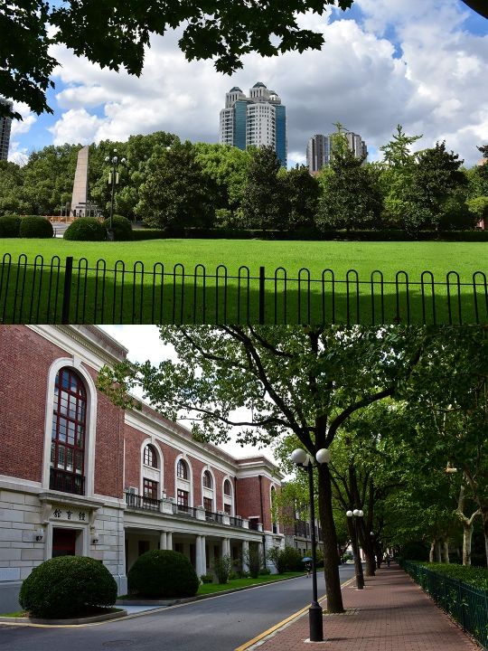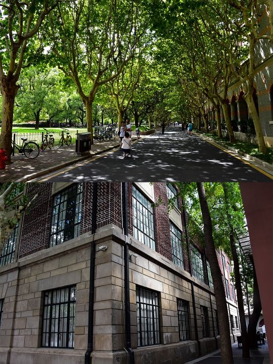 校区整体散发着厚重的历史感,大部分的建筑都比较老旧,但绿化很好,郁郁葱葱的,道路两旁都是些上了年份的大树,遮荫蔽日的,又在这里,有种穿梭时光的错觉,仿佛回到了民国时~