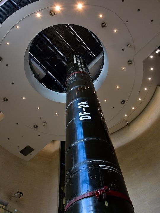 让我特别震惊的一幕:钱学森图书馆里竟然保留了一枚DF-2A原型弹弹模型,足足有三四层楼那么高;据说是当时东风导弹的备用导弹,即如果另一枚导弹没发射成功那么就会使用这一枚,不过最后那一枚发射成功了,所以这颗备用的就送给交大放在钱图里面展示,有机会大家可以去参观下,挺有意思的~